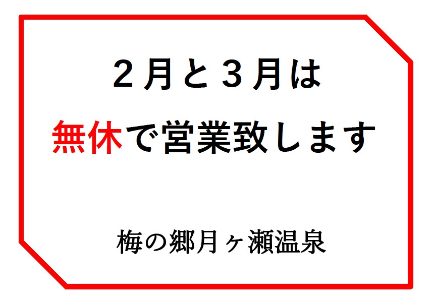 2月と3月は無休で営業致します
