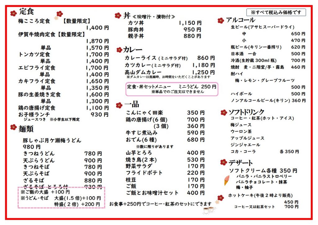 令和8年梅まつり期間用メニュー
